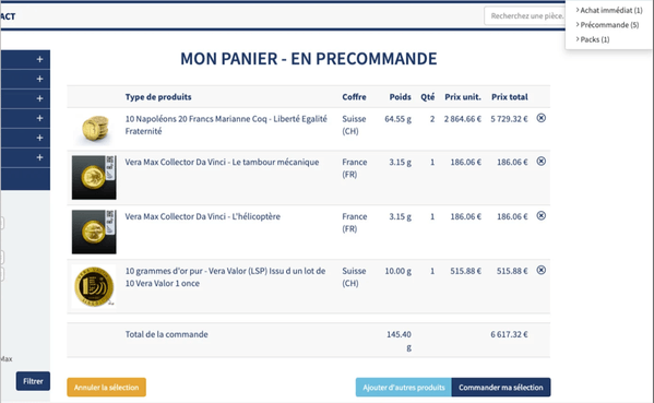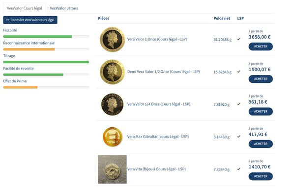 L’atout majeur est l’alliance entre les classiques (Napoléon 20 Francs, Panda, Krugerrand) et les créations maison (Vera Valor et Vera Silver), conçues pour optimiser le rendement net après impôts. C’est simplement une offre complète, cohérente et futée.