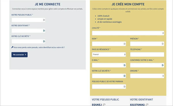 | Création d’un compte | Gratuit |