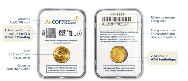 Chaque pièce est livrée dans une coque hermétique avec un scellé à Bulles™ Prooftag qui garantit l’authenticité avec un code unique vérifiable en ligne. Un marquage ADN synthétique renforce la protection contre le vol et les tentatives d’effraction. Les frais de port et l’assurance sont offerts.