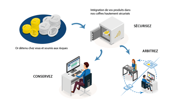 Le stockage en coffres sécurisés est le service phare du groupe. Celui-ci met à disposition des coffres protégés en France, en Suisse et en Belgique. En France et en Belgique, ces coffres sont situés hors du secteur bancaire pour une indépendance totale. Les pièces déposées sont intégrées à votre titre de propriété et à la collection disponible en ligne.