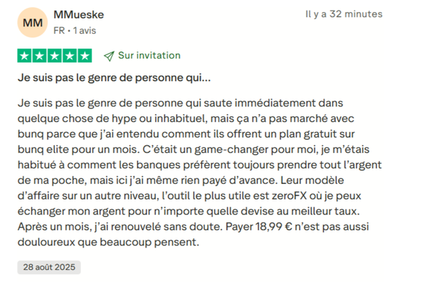 Les utilisateurs de Bunq aiment surtout la simplicité et la rapidité d’ouverture de compte (100 % en ligne, sans paperasse) et l’ergonomie de l’application, jugée fluide et intuitive. Beaucoup apprécient la transparence tarifaire (pas de frais cachés, prix clairs), la possibilité de gérer ses budgets avec des sous-comptes, les notifications instantanées et les outils intelligents comme l’IA Finn.