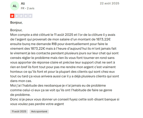 De nombreux avis négatifs pointent du doigt les blocages de comptes et de virements jugés arbitraires, parfois pour des sommes importantes (de plusieurs milliers d’euros), avec des délais longs avant remboursement. Le service client est également critiqué : réponses jugées lentes, peu claires, souvent via le chat uniquement, ce qui accentue l’impression de manque de transparence. Certains reprochent aussi des retards sur les virements par rapport à d’autres néobanques comme Revolut.