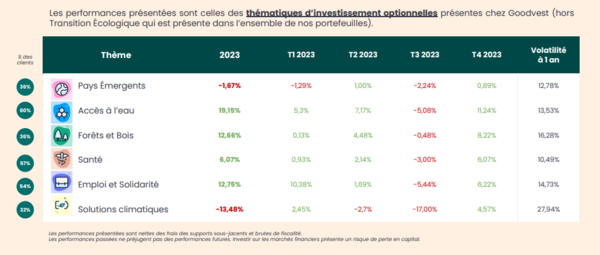 La gestion pilotée de Goodvest est basée essentiellement sur les fonds indiciels (ETF) et des OPCVM choisis avec soins. Et les performances sur les thématiques d’investissement sont plutôt positives. Cependant, le portefeuille ne contient pas de fonds immobiliers comme le (SCPI et OPCI).