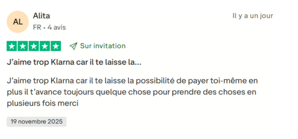Les utilisateurs décrivent Klarna comme une solution utile, accessible et simple d’utilisation. Ils apprécient le paiement différé ou fractionné sans frais, qui leur permet de mieux gérer leur budget.