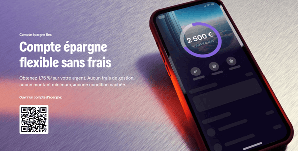 Le compte Flex est un livret d’épargne qui rémunère votre épargne à 1,85 %, sans frais de gestion, ni montant minimum. Vous ajoutez ou retirez de l’argent sans aucune pénalité. Les intérêts se calculent quotidiennement sur le solde et sont versés chaque mois sur votre compte.
