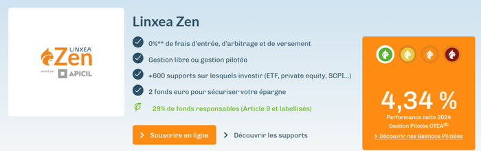 Transparence et excellence sont au cœur de la proposition de Linxea : zéro frais d’entrée, frais de gestion parmi les plus bas du marché et une expertise qui vous guide. De plus, les fonds en euros affichent des rendements attractifs (jusqu’à 3,13 % net), et sont compétitifs sur le marché.
