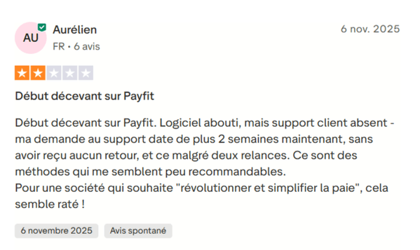 Les avis négatifs sur PayFit
