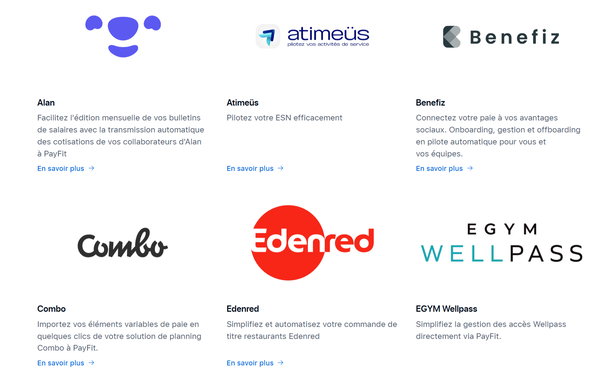 Avec une API ouverte, PayFit se connecte à vos solutions de banque, planning, performance, santé, prévoyance et de comptabilité. Vous pouvez l’intégrer à plus de 50 outils RH et financiers tels que Qonto, Swile, Alan, Pennylane, Skello ou encore Leapsome. Il peut aussi être synchronisé avec les badges d’accès, les tickets restaurants et les mutuelles.