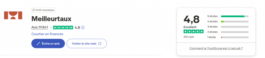 Sur Trustpilot, Meilleurtaux Placement affiche plus de 3 100 avis clients pour une note moyenne de 4,8 sur 5. Cette évaluation globale traduit un haut niveau de confiance et de satisfaction envers la marque.