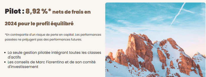 Vous pouvez opter pour la gestion libre ou la gestion pilotée “Pilot Conviction” dirigée par Marc Fiorentino. 3 trois profils d’investissement (Prudent, Équilibré, Dynamique) sont proposés pour optimiser le rendement selon votre tolérance au risque.