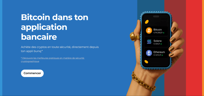 Depuis 2025, Bunq permet d’acheter, vendre et gérer plus de 350 cryptomonnaies (dont Bitcoin et Ethereum) directement depuis son application bancaire, en partenariat avec la plateforme sécurisée Kraken.