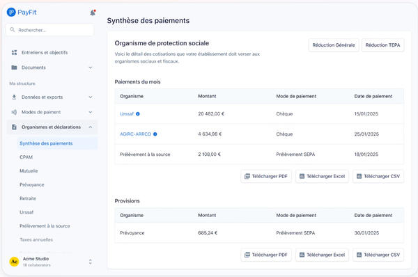 | Déclarations sociales (DSN) | ✅ |