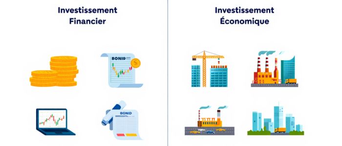 Les investissements économiques, quant à eux, sont moins destinés à des profits rapides qu’a des profits sur le long terme. On y retrouvera par exemple l’investissement immobilier, où les équipements d’entreprise, permettant d’augmenter la productivité de cette dernière et de ces employés, dans le but de la faire croître dans le temps, et ainsi augmenter sa valeur économique.